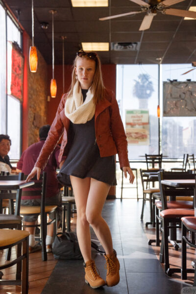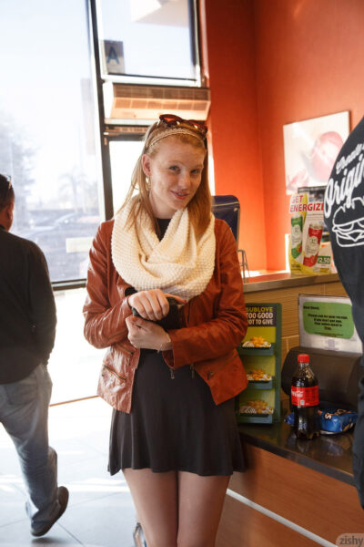 Abby Vissers know that Subway Blows but she really enjoys grabbing a bite, then going to flash her boobs outside on Zishy.