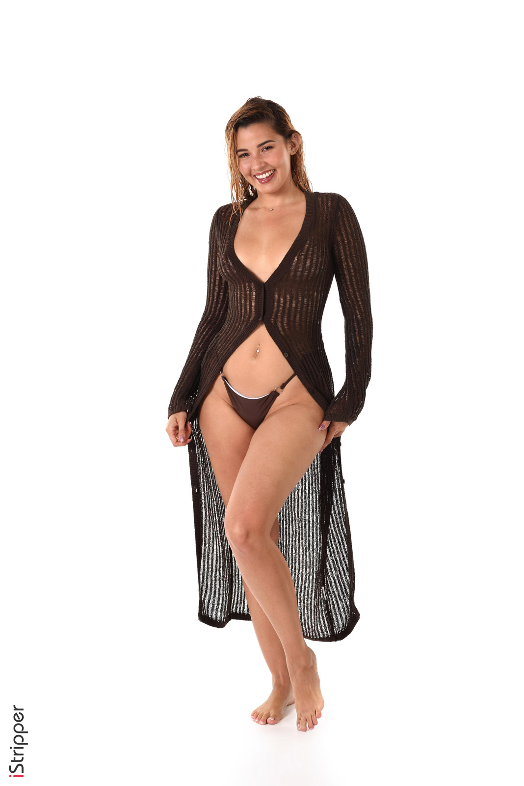 Agatha Vega is feeling real wet in the studio today because she can't wait to slide off her robe and thong on IStripper.