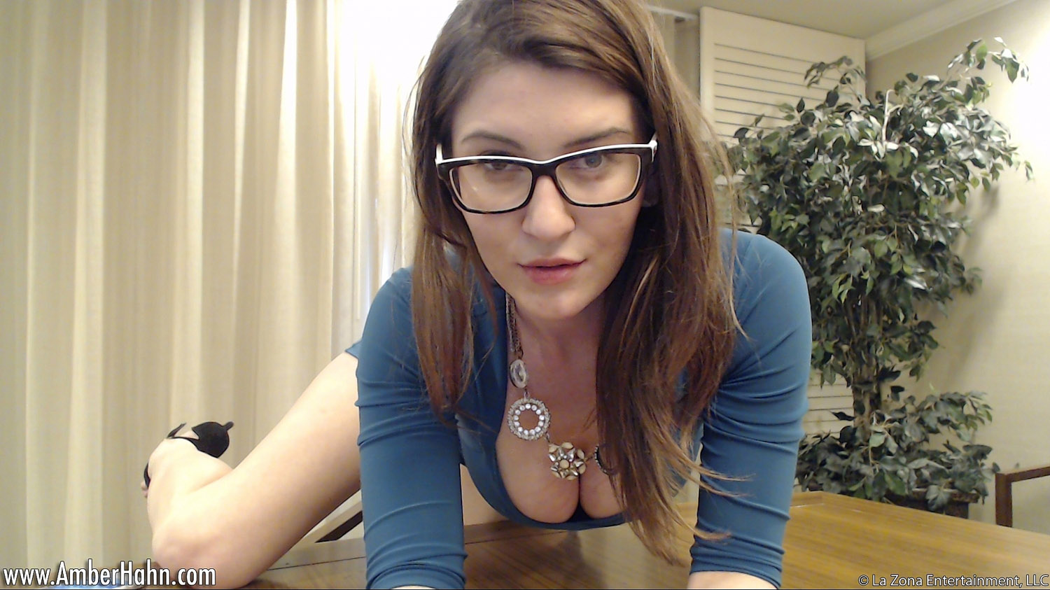 Things get interesting at Amber Hahn's new job because she forgot to wear panties to work today! Good thing Amber is an accountant and has to do number crunching behind a desk, but before that she decides to lift up her skirt and play with her pussy.