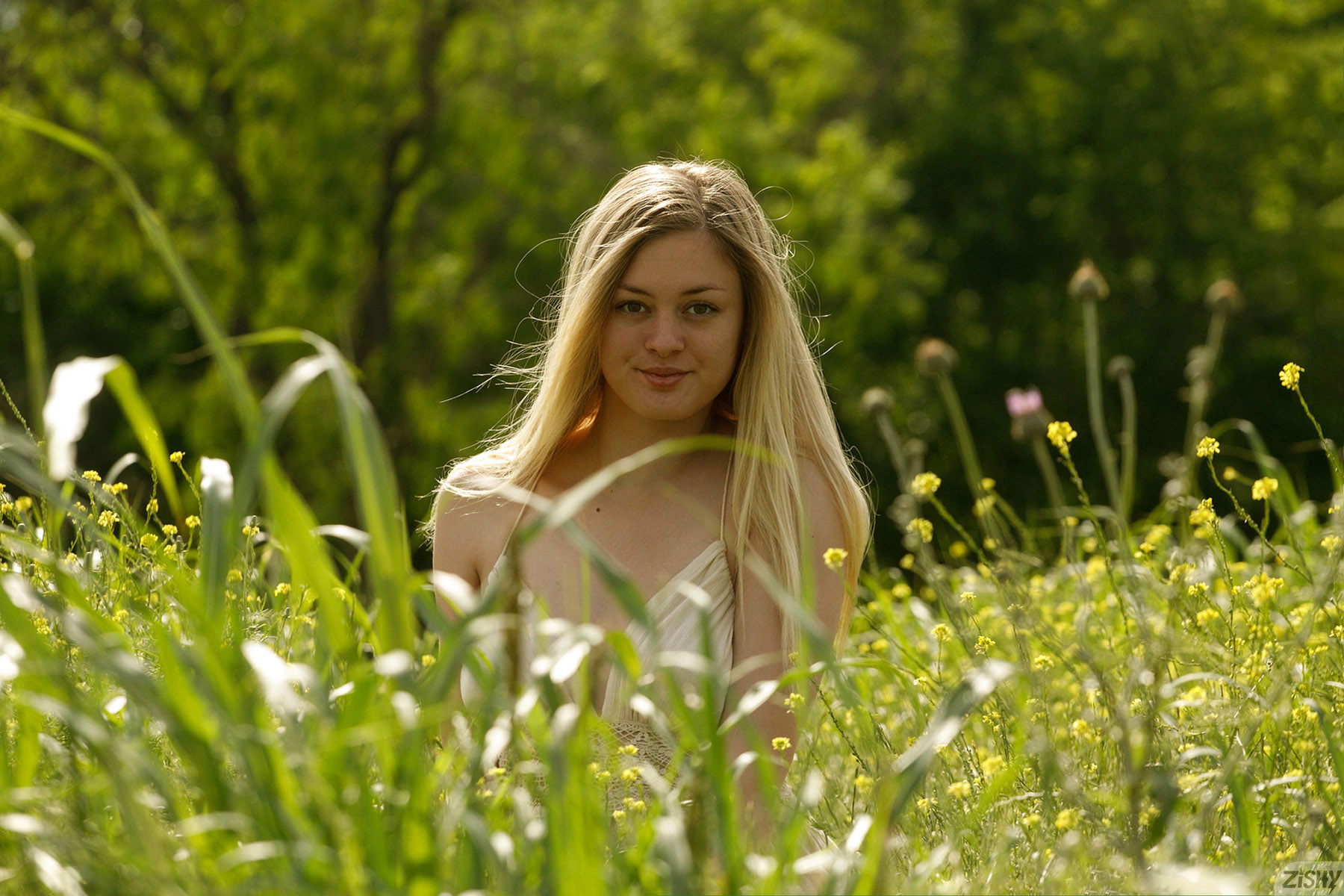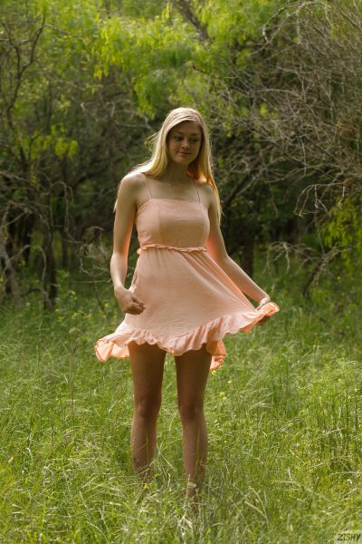 Amber Moore likes to take the path less traveled so she can take off her dress and panties outside and be fully naked during hiking on Zishy for the set In Whitetail Trail.