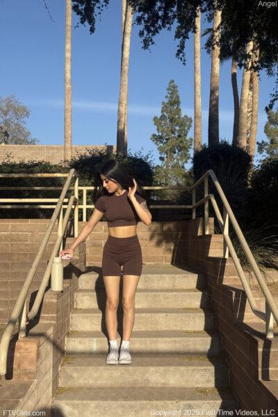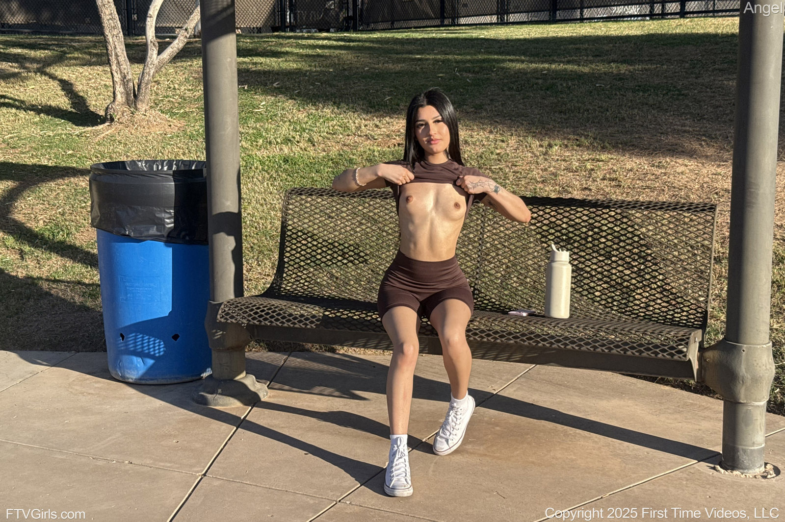Angel is sporty but also the type of girl to pull down her shorts and start playing with her toy right there outside on FTV Girls.
