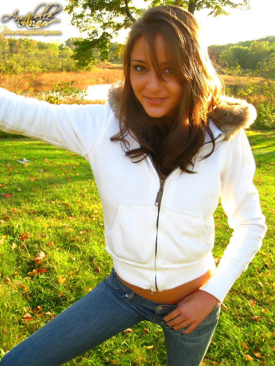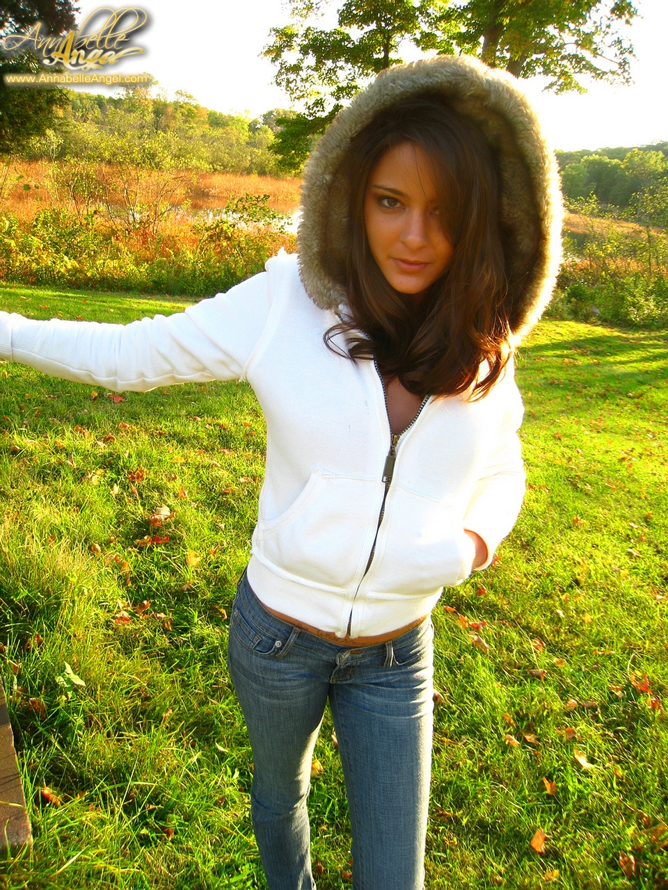 Annabelle Angel doesn't mind that it is cold out, she still wants to show off her boobs! The good thing about cold is hard nipples on girls, and usually they wear white shirts lol. Luckily Annabelle just has her jacket and nothing else ;)