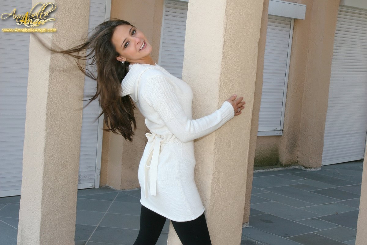 We met Annabelle Angel flashing in the park last week, but today she kicks things up by stripping at the beach. I can just imagine that sweater flying off and those pants getting pulled down as Annabelle shows off that sweet body on the sand. Now I wanna go to that beach!