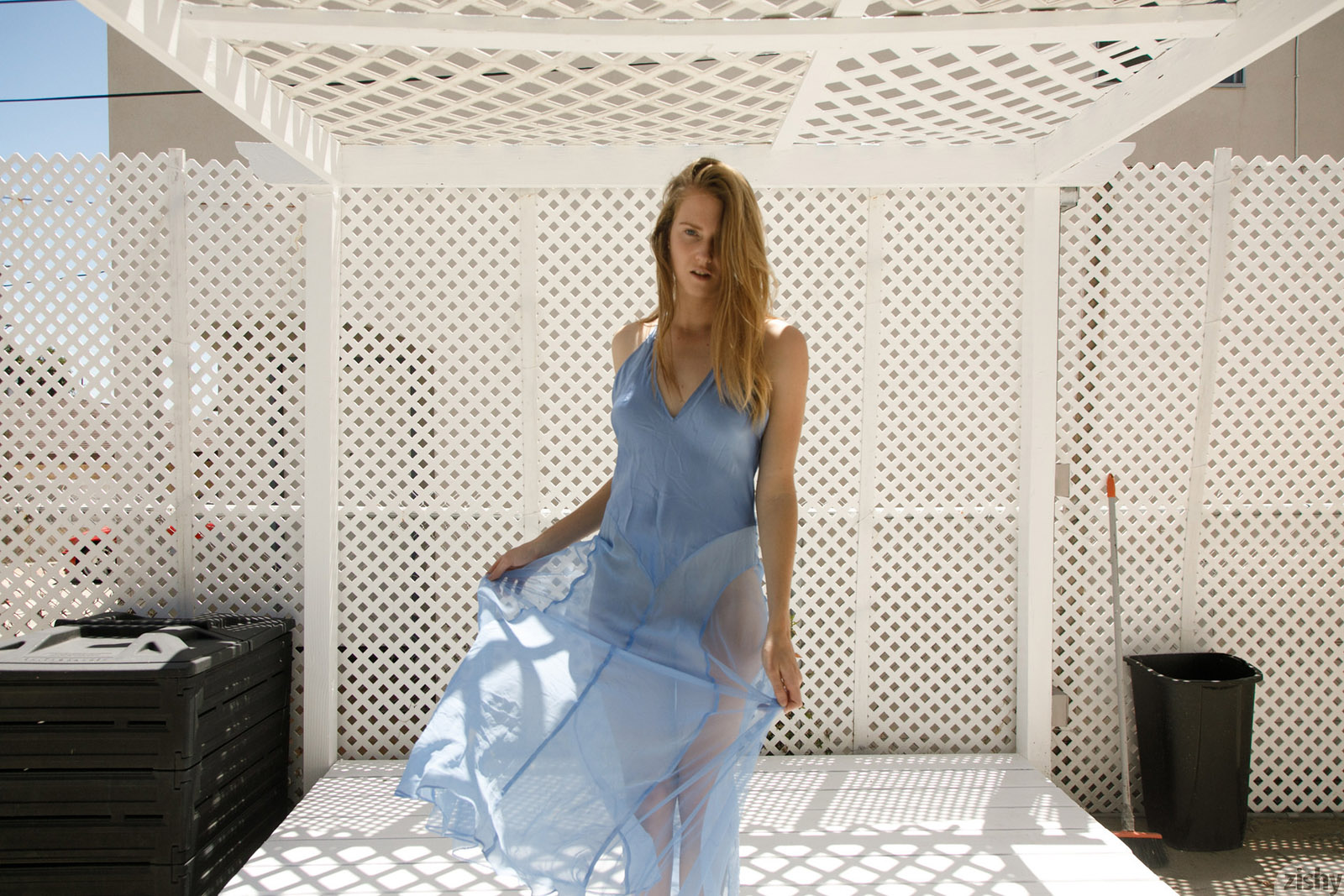 Ashley Lane looks like that cute blonde next door but she's also got a frisky side that she shows off for Zishy today.