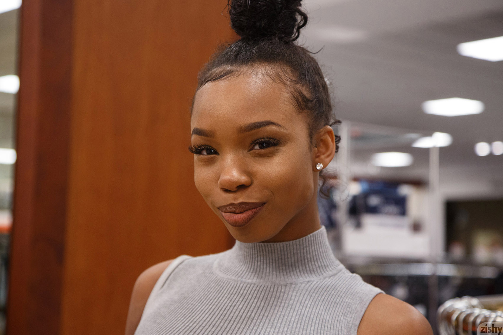 I think Zishy just found the most amazing newcomer ever. Say hello to Asia Amour, a beautiful ebony babe who likes to window shop, try on clothes, and flash her perfect round ass in the changing room. Go ahead, come on in, Asia has plenty of clothes to try on for you.