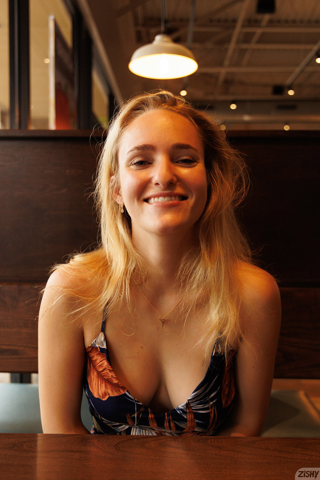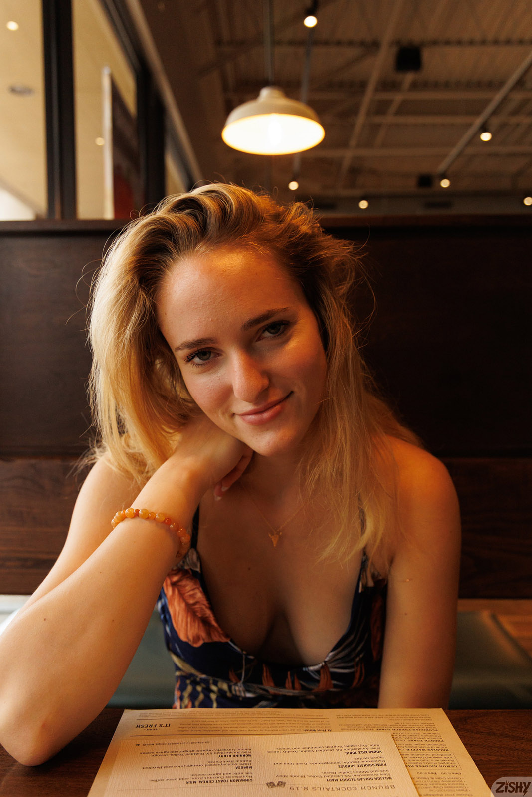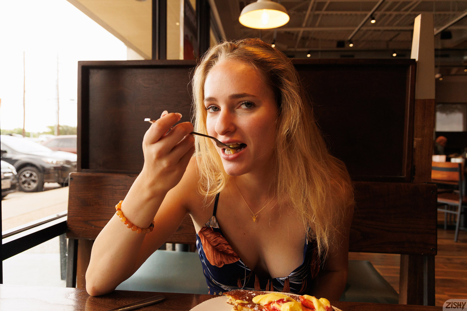 Athena Fleurs is stoked to get some breakfast in her low cut dress because this frisky blonde has a big day planned for Zishy.
