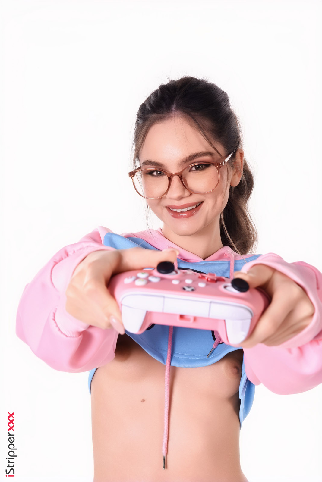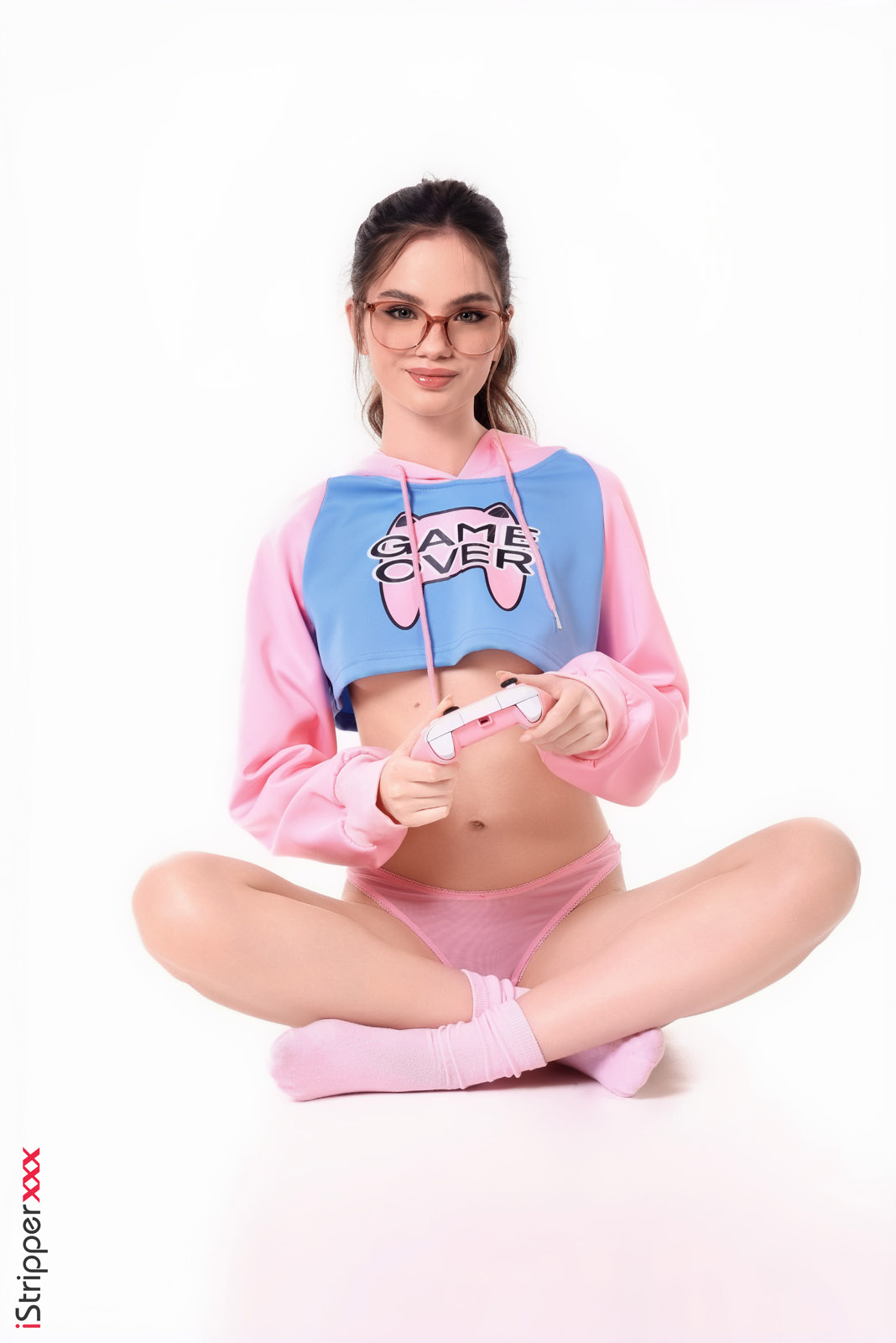 Ave Deva is ready to play because this sexy newcomer is quite the gamer girl in her hoodie and thong on IStripper.