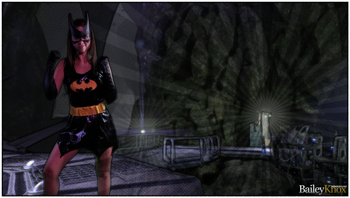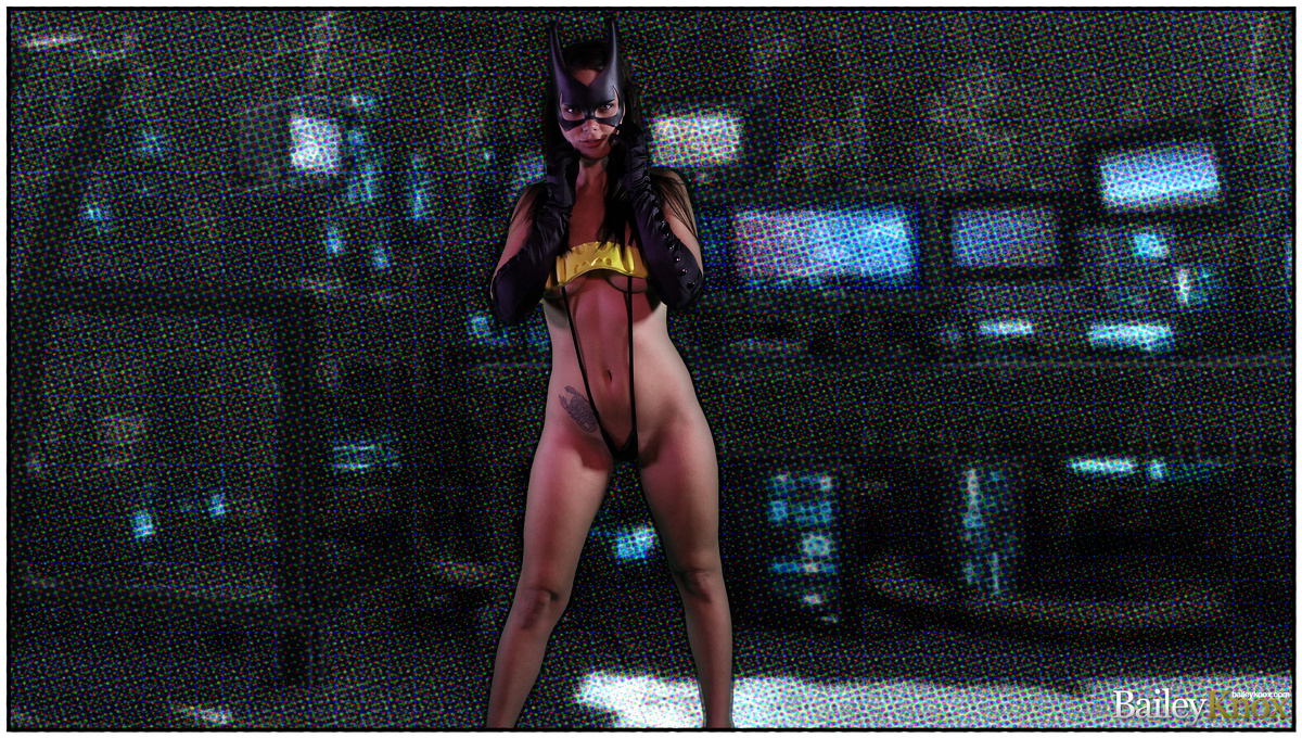 Na-na-na-na-na, it's batgirl! I love how many costumes Bailey Knox has which suggests she loves dressing up beyond halloween, she just loves dressing up period. I would say by the looks of how naked she is today, she really prefers dressing down. Now this is the batgirl of my dreams.