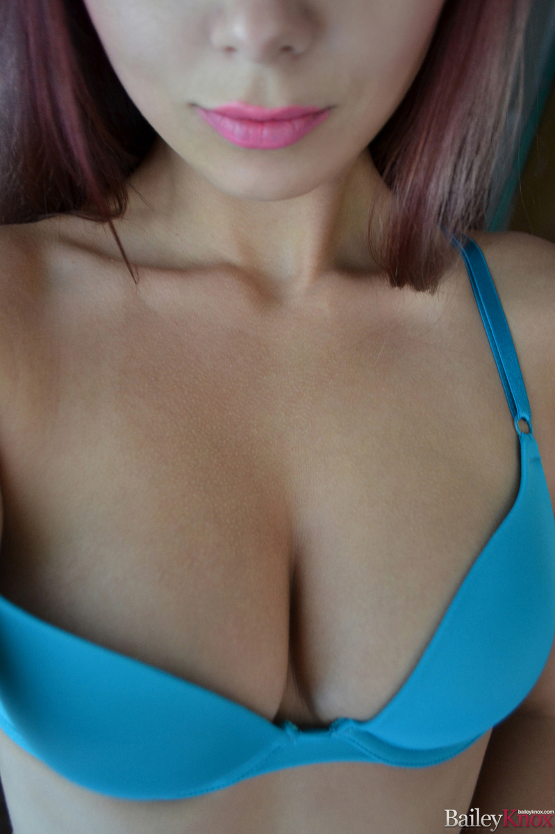 Blue and pink are very good colors on Bailey Knox, and I'm not just saying that because she ends up showing her pink today. I truly enjoy when Bailey is having a good time, and it looks like these candids pictures prove Bailey has fun in her bra and panties (out of them too).