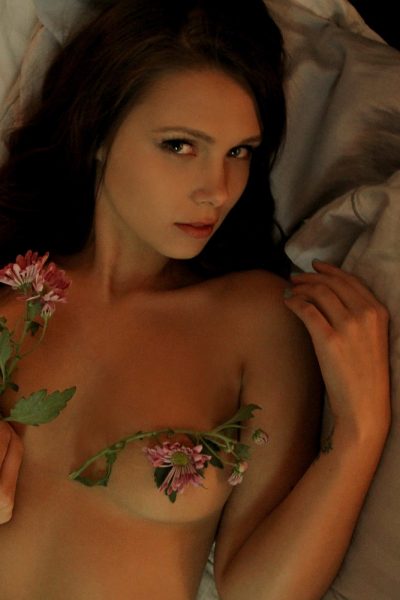 Bailey Knox has a special night planned in her lace lingerie, rolling around in bed until she gets the great idea to get naked and spread flowers all over herself. Isn't it great to see flowers on Bailey's shaved flower? ;)