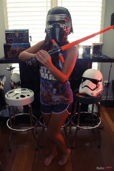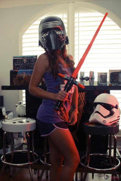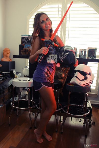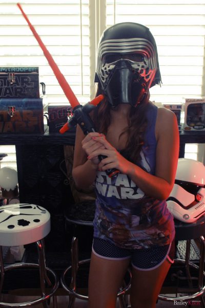 is a total fangirl, a comic book nerd who has a crush on her favorite characters. Well today it's all about a famous movie for Bailey, because she's a Kylo Ren fan and shows it off by getting naked.