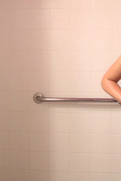tiny shower, giant dildo. I included way more pictures of her sucking and fucking this thing, and yea, apparently she shows off her pussy a lot.