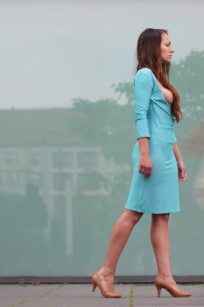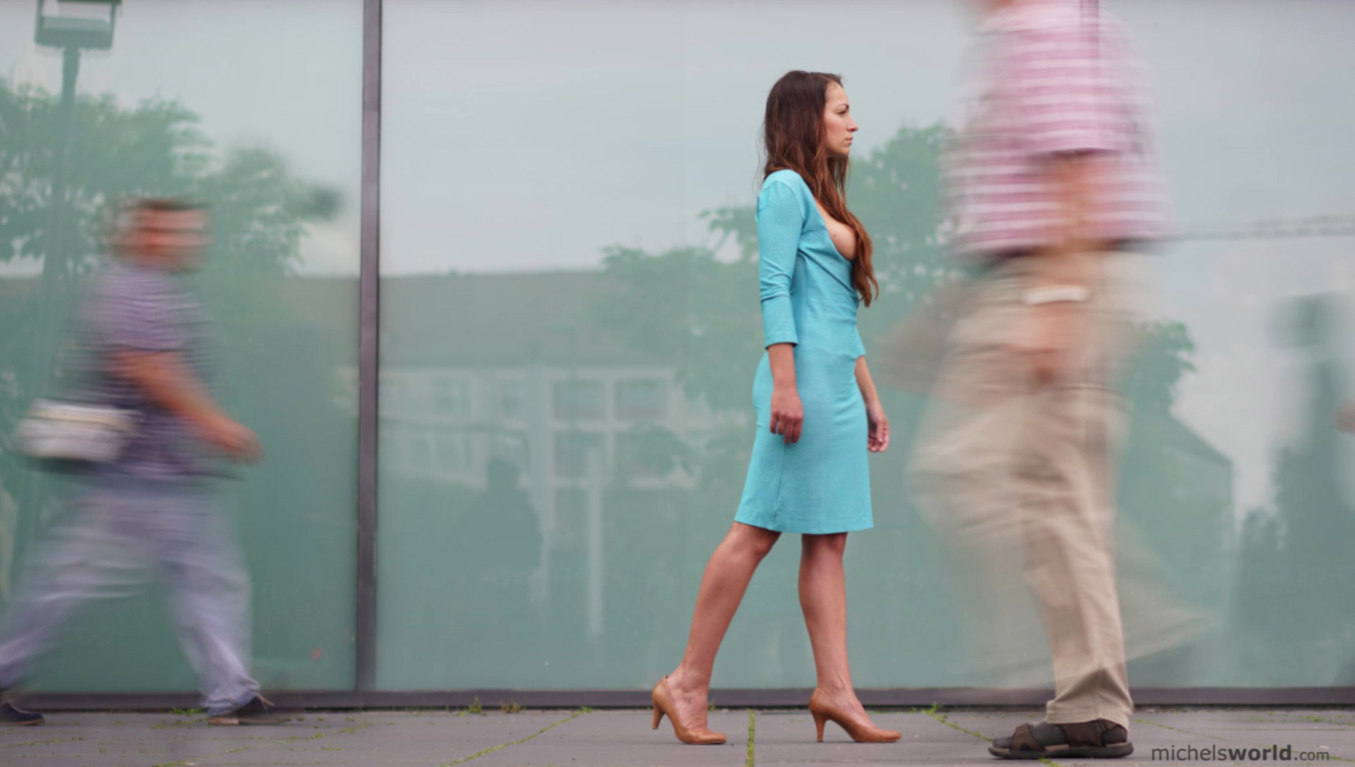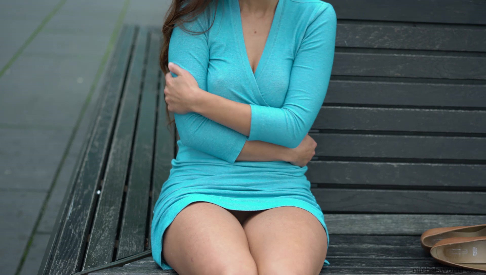 Blaue Stunde is when a cute brunette amateur poses in her blue dress outside, revealing her breasts and bare pussy in public on Michels World.