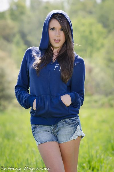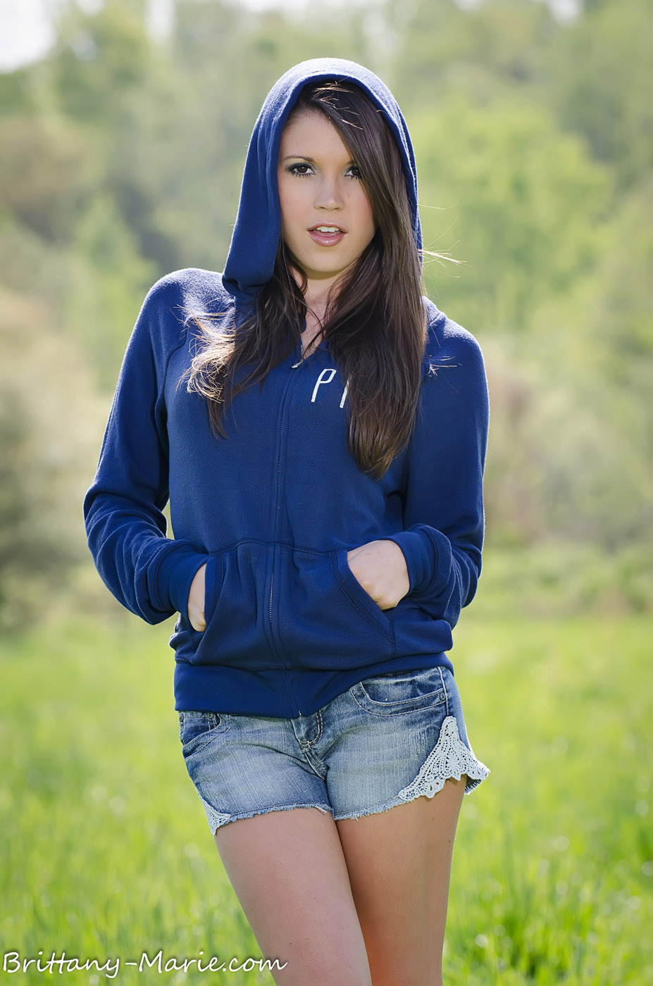 Brittany Marie is a normal girl, albeit very sexy, so it's not too uncommon to see her wearing a hoodie and jean shorts. What's uncommon is watching Brittany strip nude in public, one of the first times she has done this.