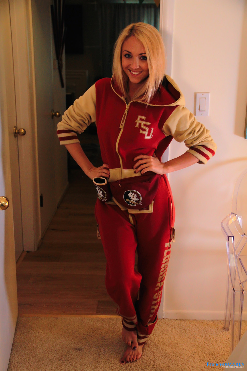 Brooke Marks is a college girl at heart, quite peppy and really excited to be posing in her florida state fanny pack today. You know what I like best about this? First off, she gets naked and bounces that booty. Second off, she reads reddit which is fucking awesome!