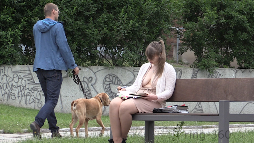 This cute and busty college girl really loves playing the exhibitionist because today she ends up studying outside with her boobs out. After some head turning and stares, she decides why not just play with her boobs instead of studying, because people are more interested in that.