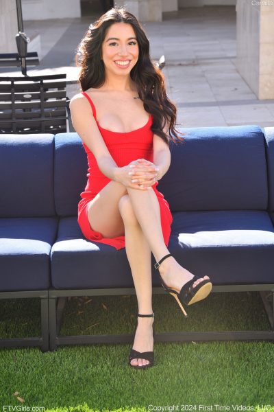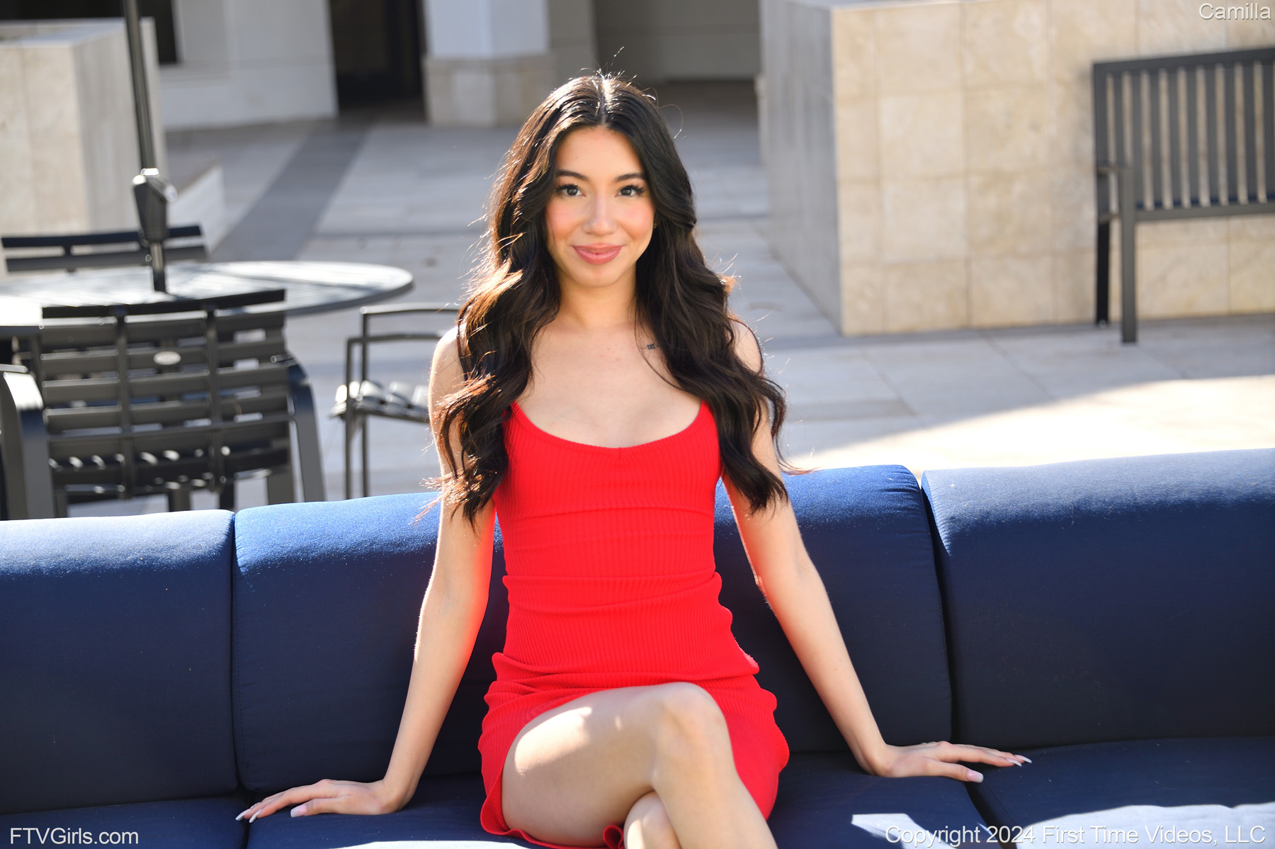 Camilla Cream wears her sexy red dress outside because she's having a wet valentines while playing with her tight pussy on FTV Girls.