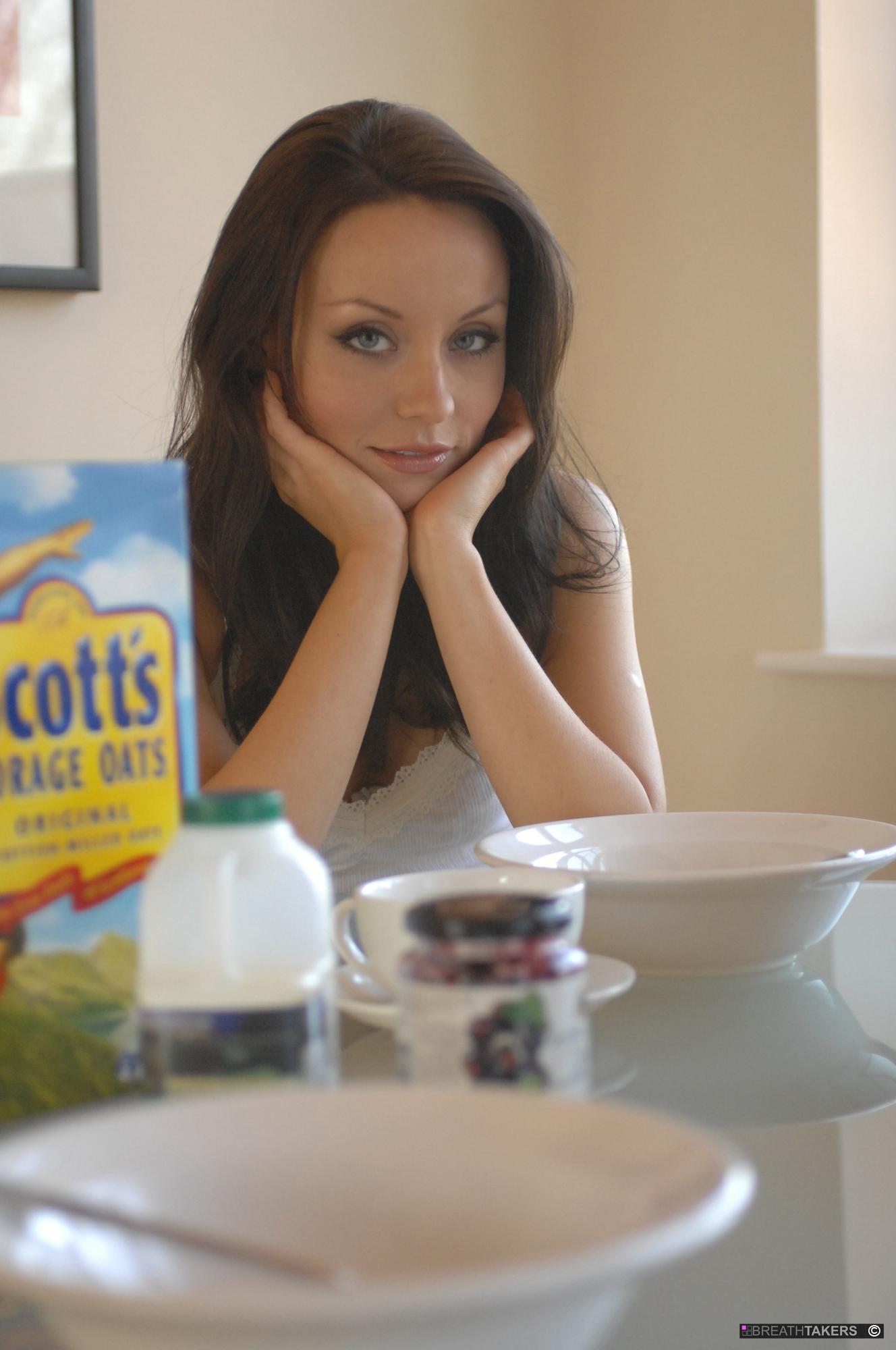 Carla Brown asks whats for breakfast and the answer is nipples and pussy. Maybe it's just me but Carla looks amazing in the morning with her top down and skirt up, I think girls get really horny in the morning too. Why else would she be masturbating over breakfast?