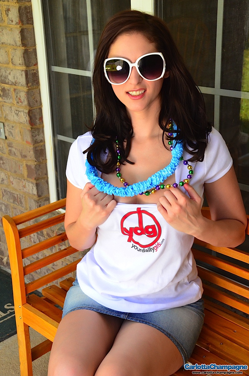 Carlotta Champagne celebrates Mardi Gras like a boss, by requesting as many beads as possible. We all know what happens when hot girls get beads, they flash their boobs, however Carlotta goes beyond that and flashes her trimmed bush as well! Say Carlotta, what would you do for 10 beads? ;)
