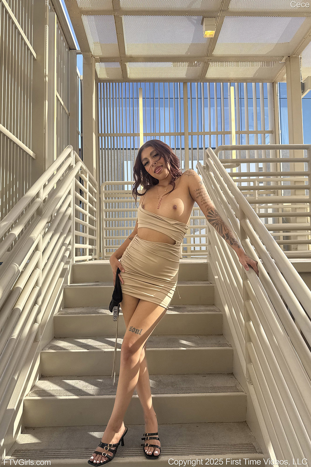 Cece does some modeling at the garage where she can bend over in her mini dress and show off her ass on FTV Girls.