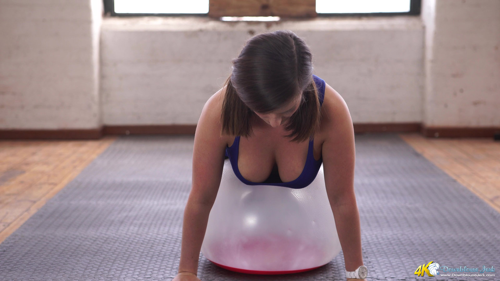 Admit it, you go to the gym to check out the major cleavage. It's ok, because Charlie Rose puts on the most amazing show today as she exercises with a top that's way too small for her big boobs. Whoops, looks like Charlie is going to be stretching while topless.
