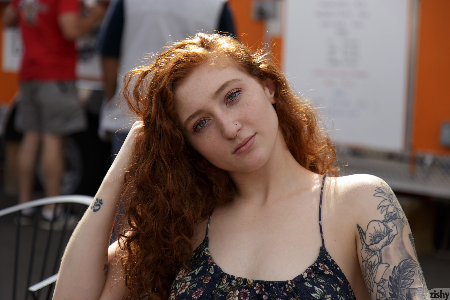 Corsen Gilroy is so hot that she starts a food truck fire while flashing her tiny thong and ass in public on Zishy. It gets even better with this sexy redhead when she brings things back home to get naked.