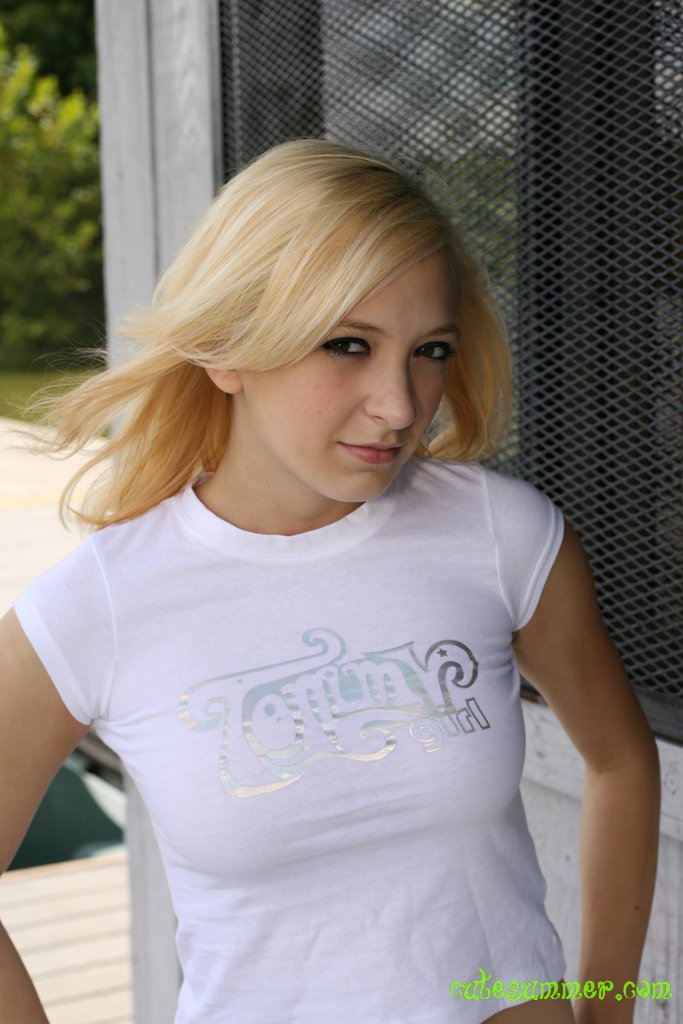 It's not summer here yet but I figure this gallery will help everyone get in the mood for it. Cute Summer just happens to be hanging around the docks and since there is nothing to do, she strips down to her thong. Good idea Summer!