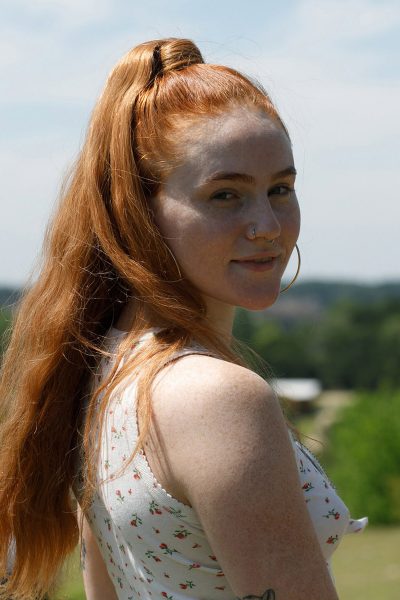 Dabney Conrad is that all natural redhead you see in public and wonder what her panties look like, so Zishy answers it today for the set Fragrant Rhubarb. Did you know Dabney it big into plants as well?