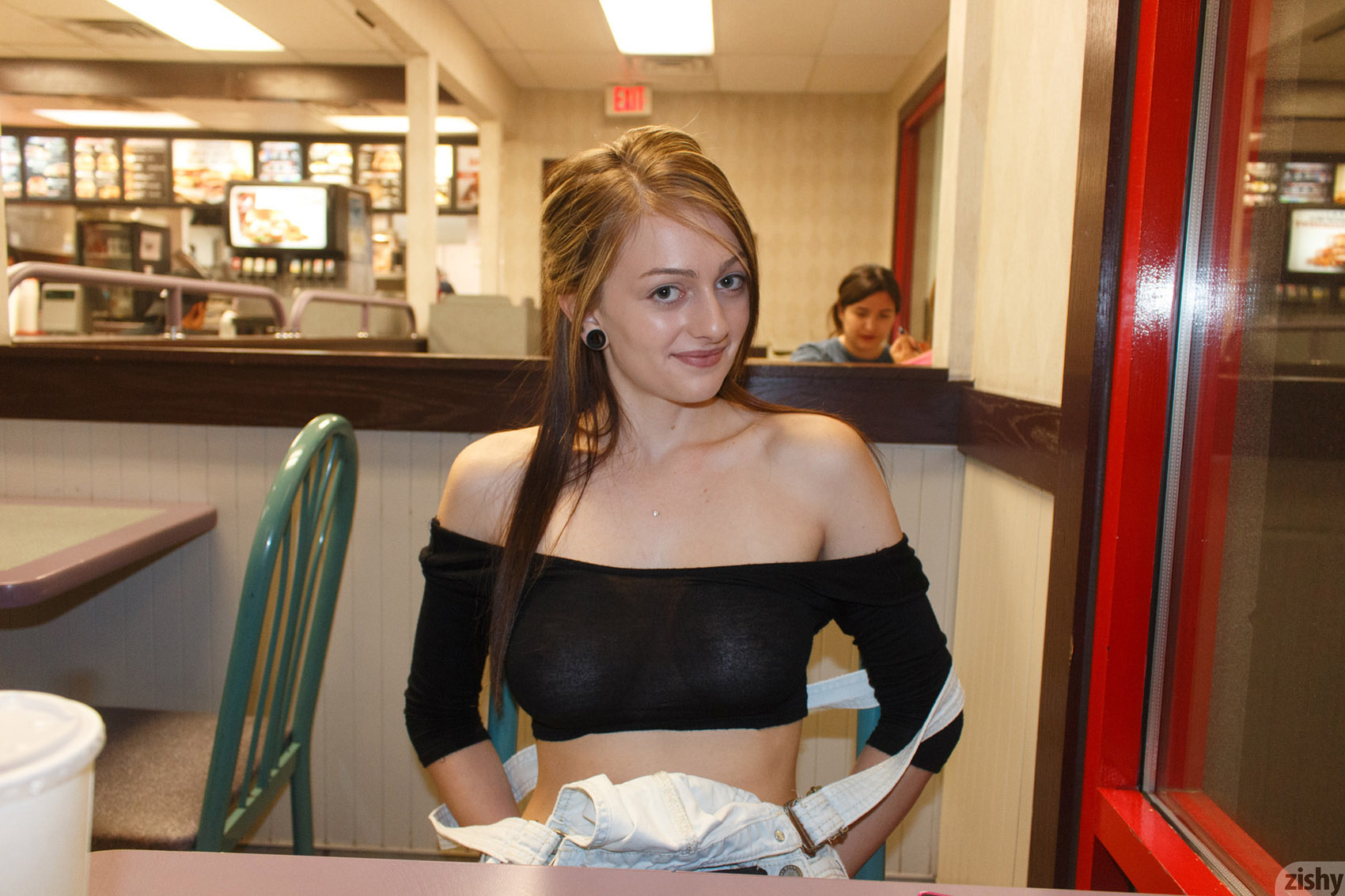 Dahlia Polka is just a small town girl who went back home for the weekend, and it turns out that posing in a skimpy dress by her hang out place could get her caught. Zishy suggests that Dahlia go inside and get more comfortable, which helps because yes, that's Dahlia standing naked in the doorway, just for you.
