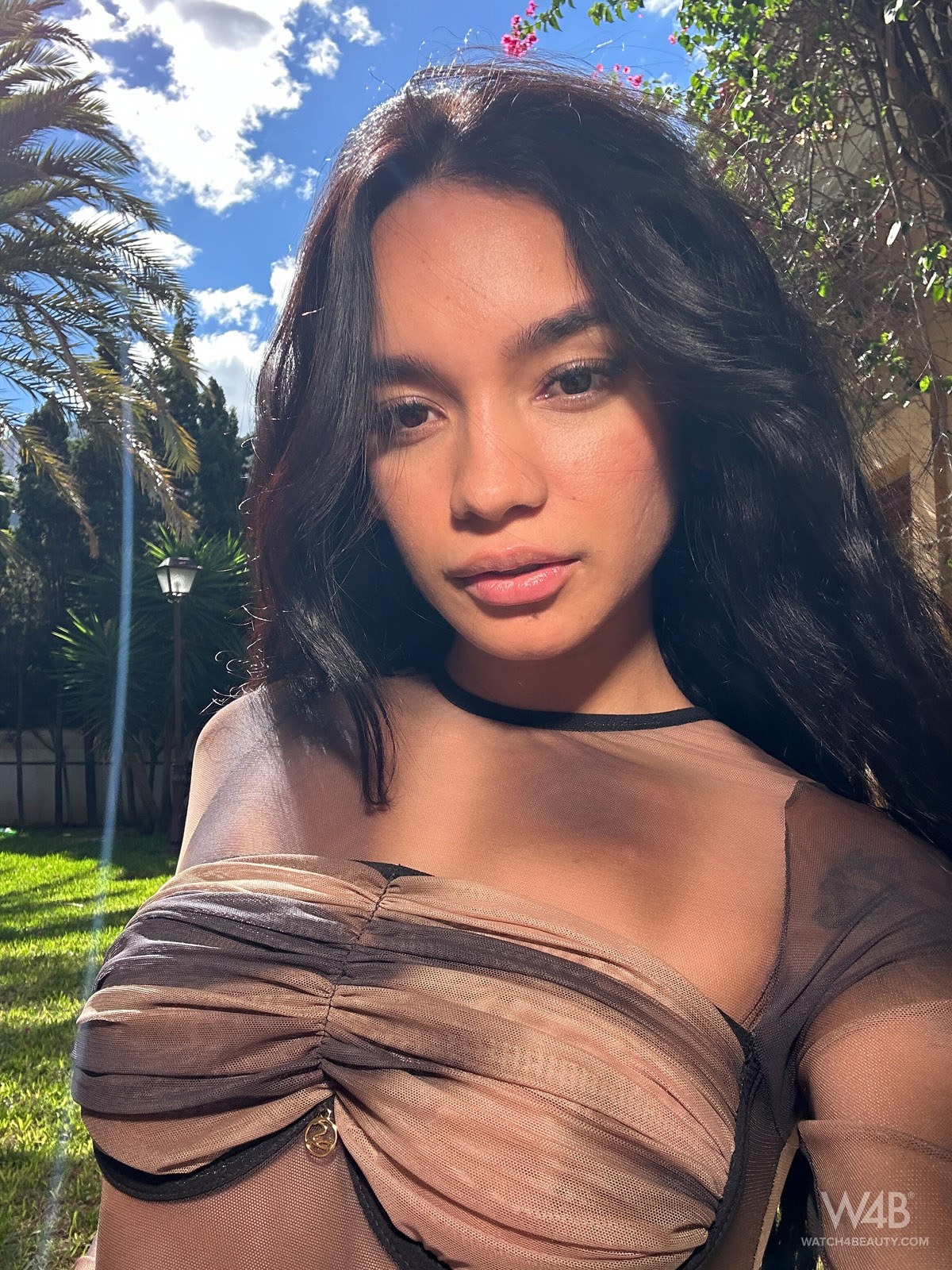 Dulce loves taking selfies under the palm trees because her one priority is making sure you drool over her pussy on Watch4Beauty.