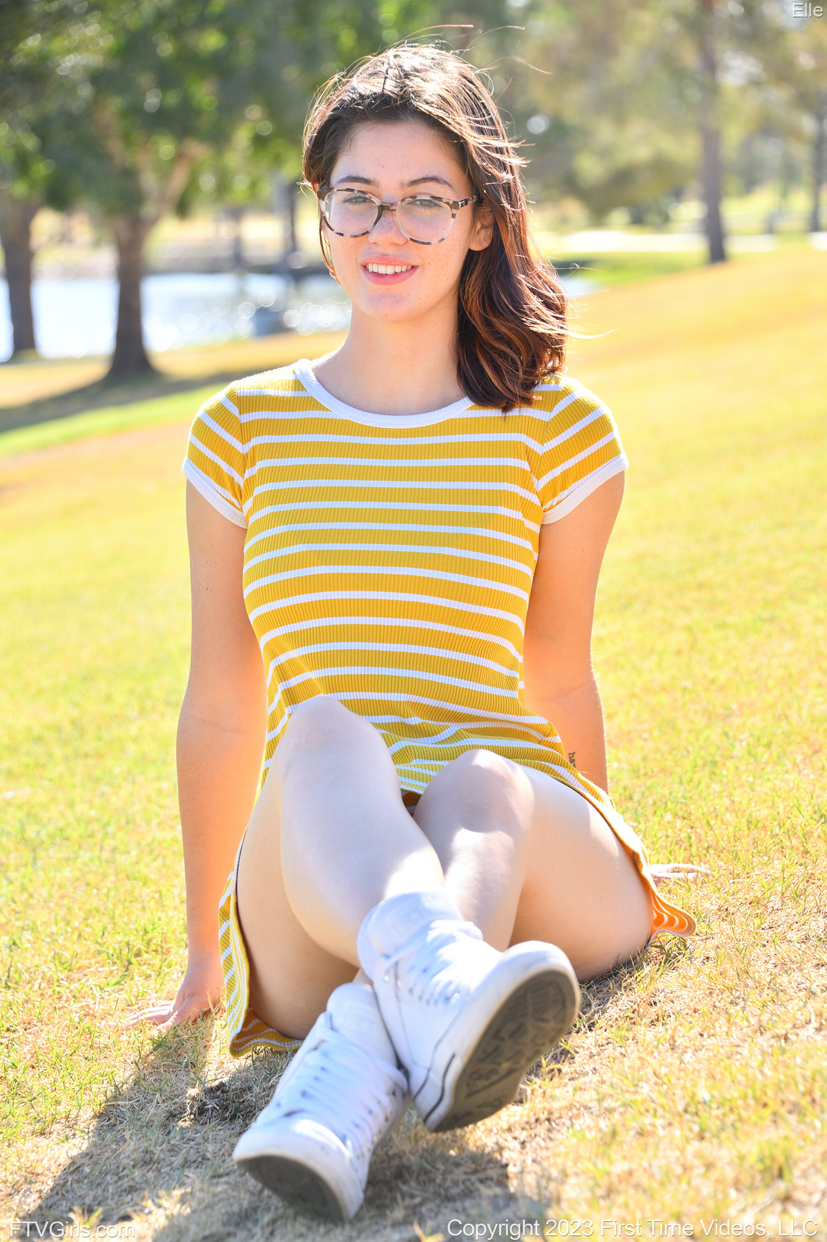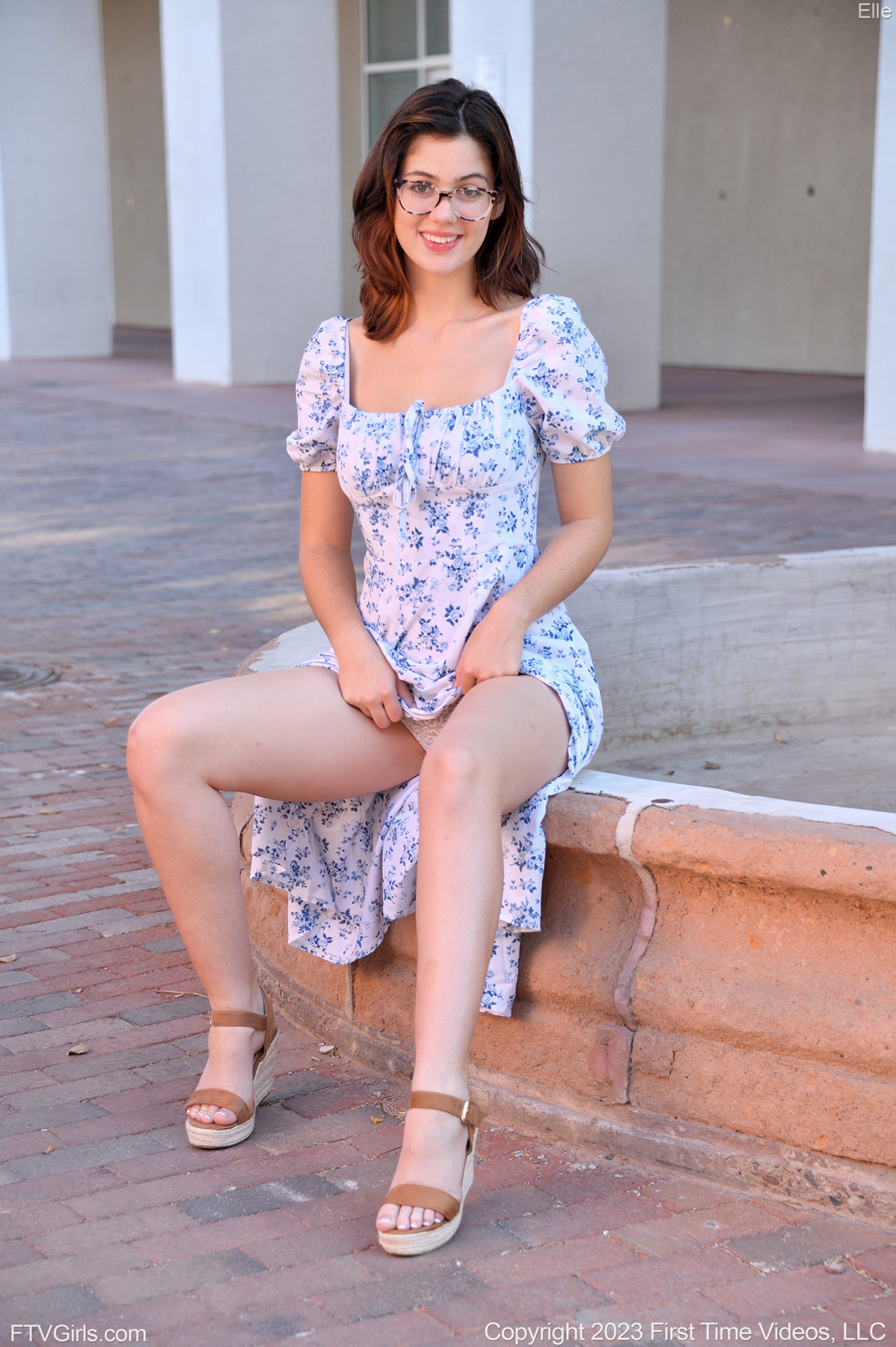 Elle is such a cute and fun loving girl who likes to flash her boobs and pussy in public on her FTV Girls debut for the set Her Assets In Public. Do you like that Elle wore glasses today?