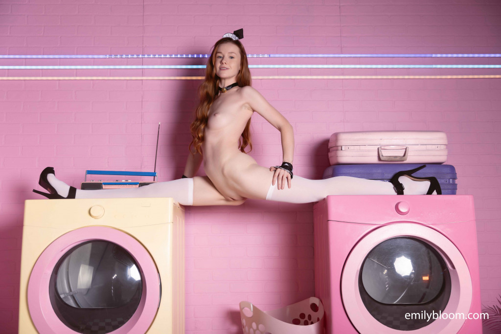 Emily Bloom likes to go to the Laundromat in a sexy maid outfit without any panties because she plans on washing everything anyway. Wouldn't you love to catch her like this?