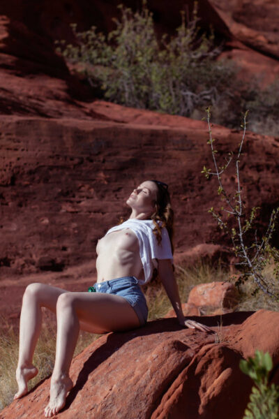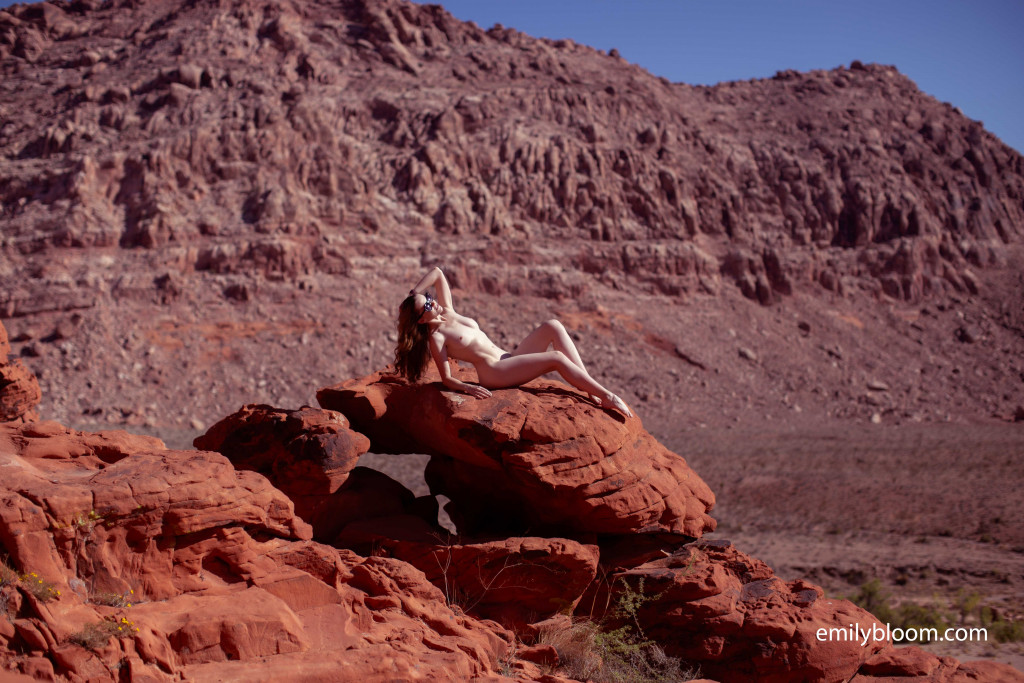 You can find Emily Bloom at red rocks enjoying the nature while she literally poses naked on the rocks like a frisky vixen.