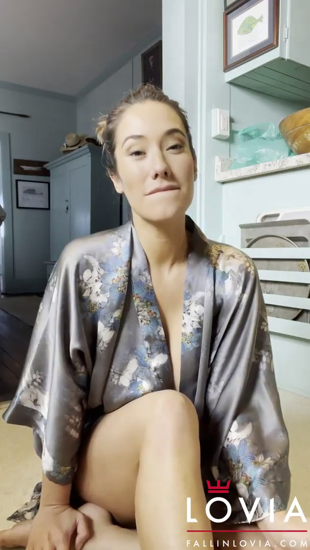 Eva Lovia just got out of the tub, taking off her silky robe so she can play with her favorite toy inside her tight pussy.
