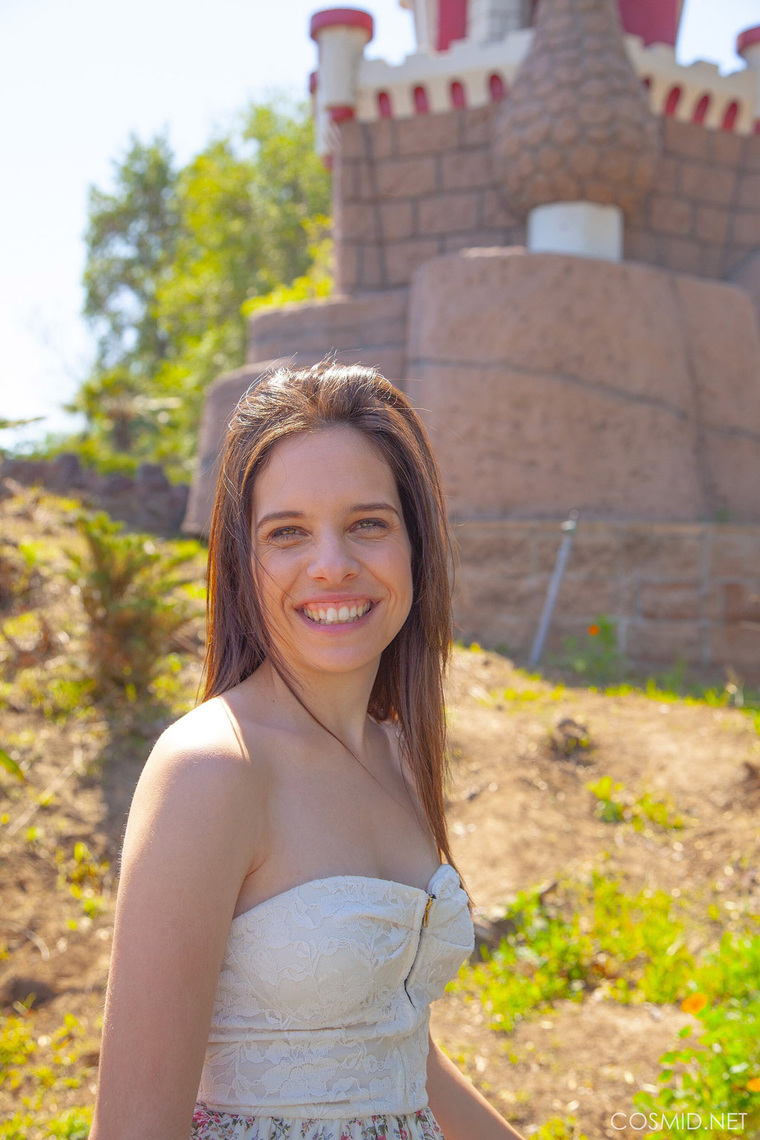 Fey Martin wears a cute dress to the golf course without any panties so she can flash her trimmed pussy on Cosmid.