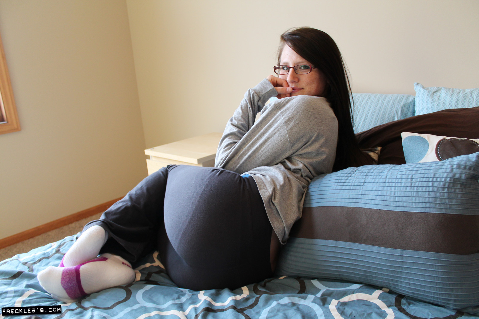 Freckles 18 is just the kind of girl who always likes to have fun. I mean seriously we saw her naked in a store the other week, now we get to see her peel those pink panties off in bed.