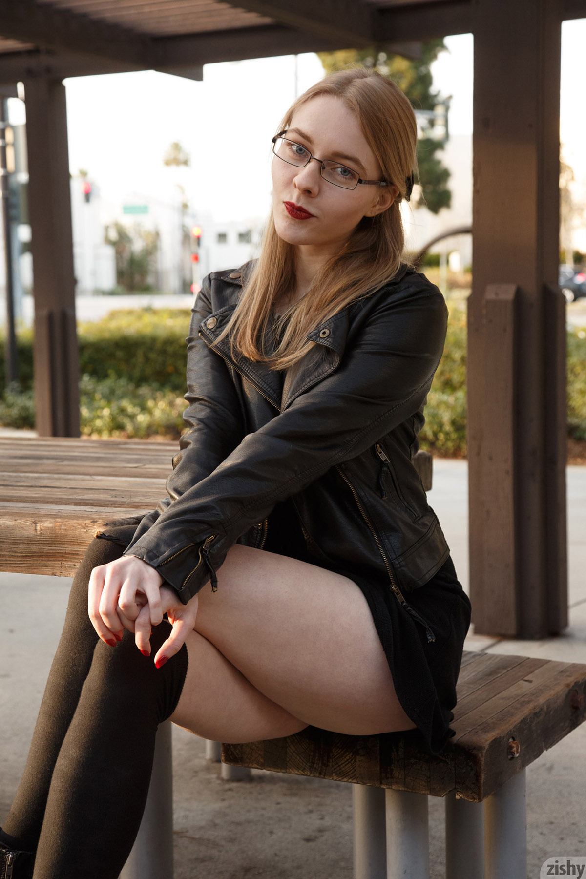 Freda Motten knows that smoking kills but she looks so good doing it while lifting up her black dress in public on Zishy. I love that Freda enjoys checking out cars while you check out her red thong.