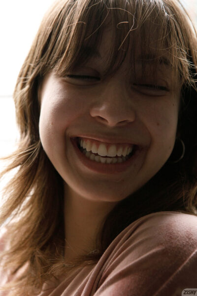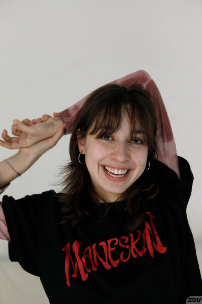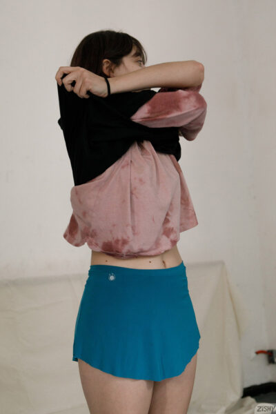 Geral Santos is a cute brunette newcomer who loves showing off her t-shirts and tiny black thong while she candidly poses for Zishy.