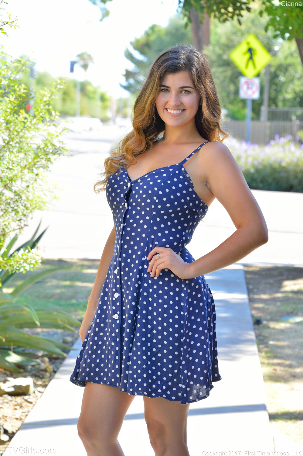 So you know that cute dog walker in the polka dot dress? That's Gianna, and she wants to show you that she's frisky and made for FTV Girls. I love that we find out Gianna is actually really busty and has one of the best looking pussies ever. Take a peek, she flashes it a few times.