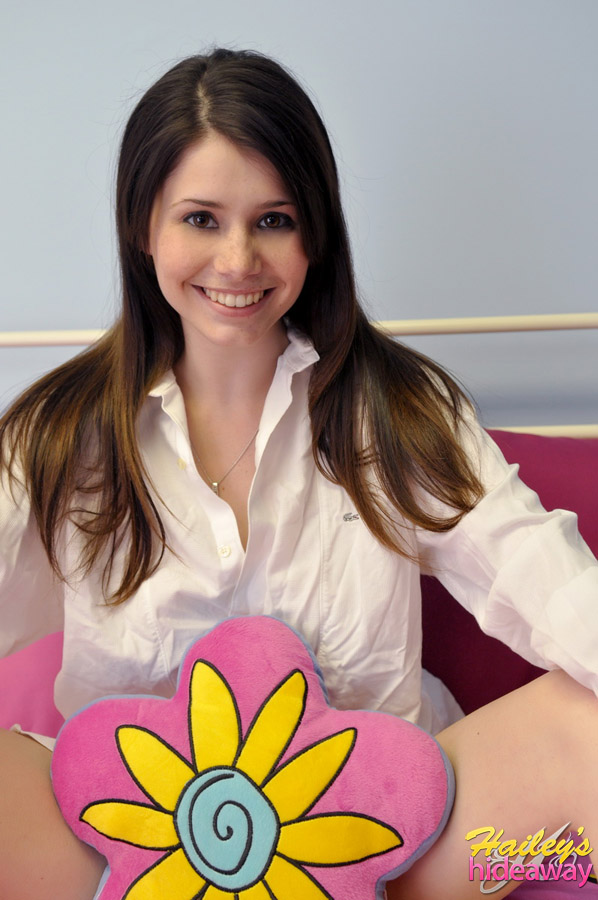 I'd like to hide something in Hailey that's for sure lol! Today Hailey puts on one of her big shirts and teases us alittle bit in bed with her perky boobs, now if only she was wearing my hands.