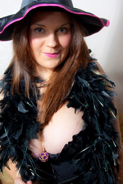 Now this is what I call one sexy witch. Hannah Sharp dresses up in the perfect costume for Halloween and her cleavage is absolutely amazing. I want to stick my head in it and have my way with her boobs.