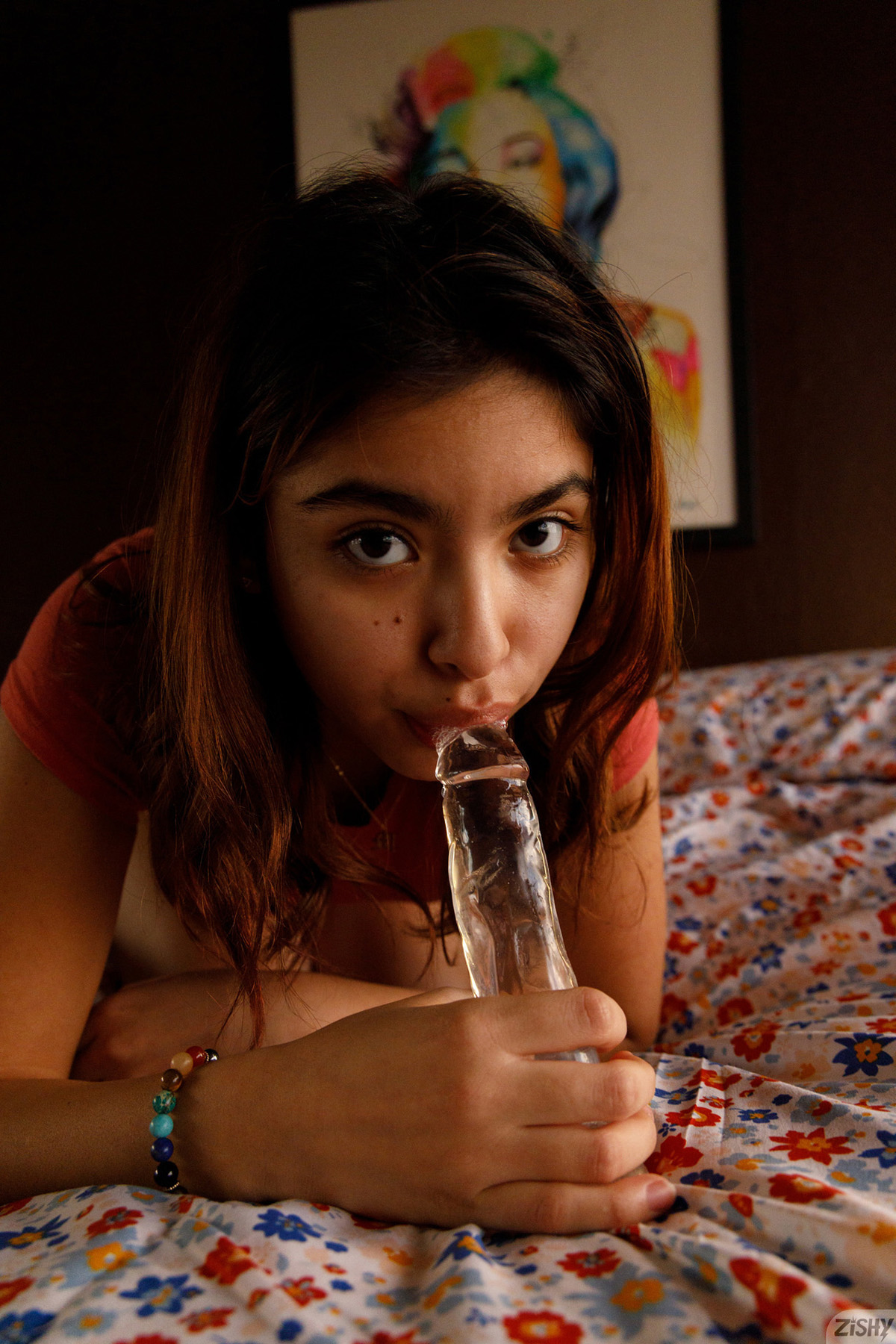 How about them apples 2 with Hazel Heart? You'll notice that Hazel is sucking on her dildo completely naked and this still follows the rules of girl next door on Zishy.