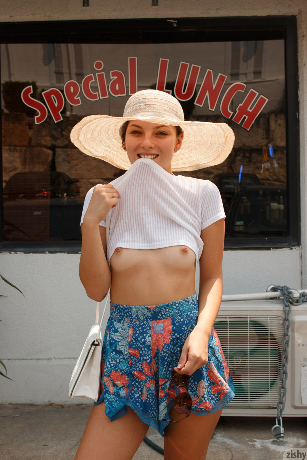 I just fell in love with Heaven Starr because of her beautiful looks and cute frilly shorts where she isn't wearing any panties on Zishy.
