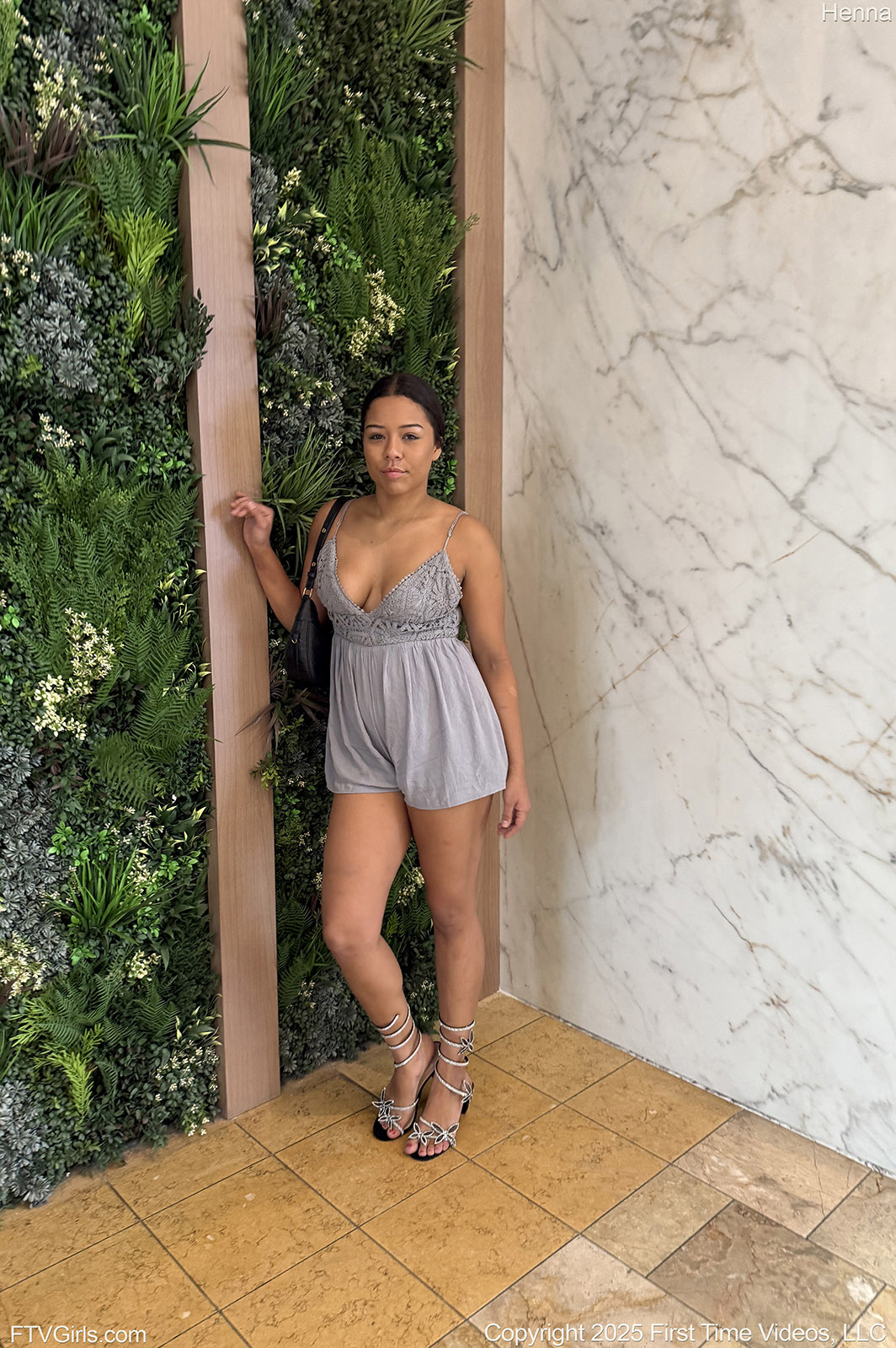 Henna Vale is the perfect naughty girl at the mall who just slides down her romper to spread her butt on FTV Girls.