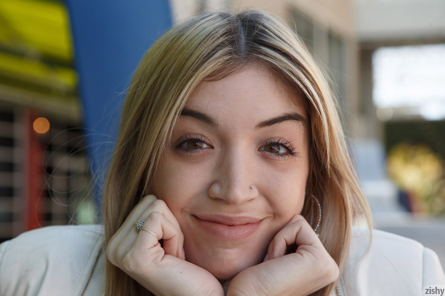 Wow! Isla Brown from Zishy is such a breathe of fresh air because she's full of spunk and full of boobs. This busty beauty decides to visit the candy store in her tube top and mini dress, flashing her boobs a few times and then bending over in her skirt, showing us her sexy red lace panties.