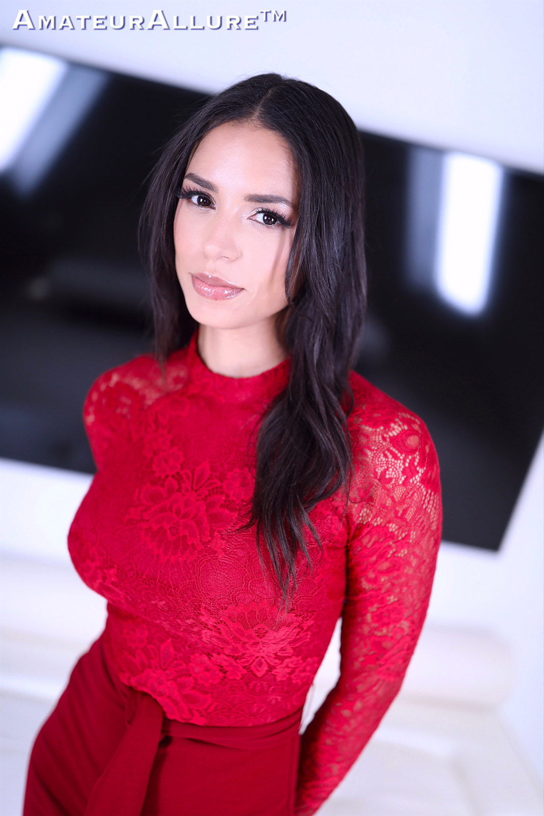 Jazmin Black makes her debut on Amateur Allure in a sexy red dress and this beauty is ready to show off her O face.