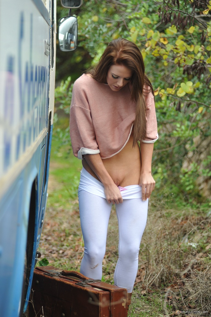 These have to be the tighest pants I have ever seen. Jennifer Nexus certainly isn't shy about walking around in public like that, infact she is so confident that she flashes her pussy at the end.