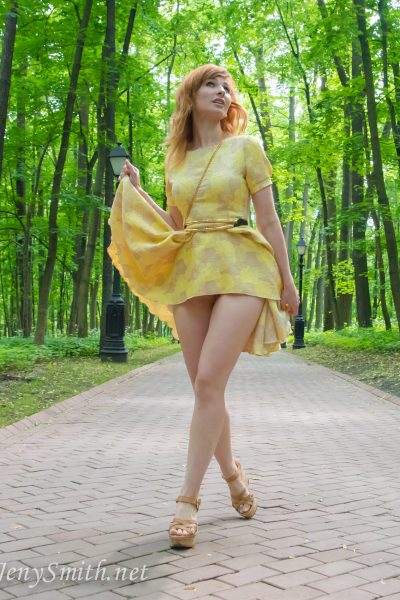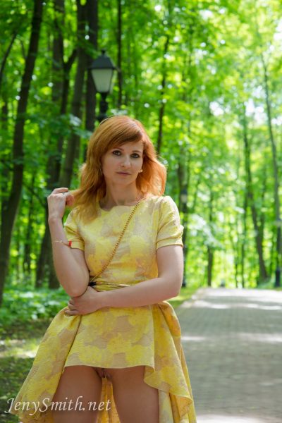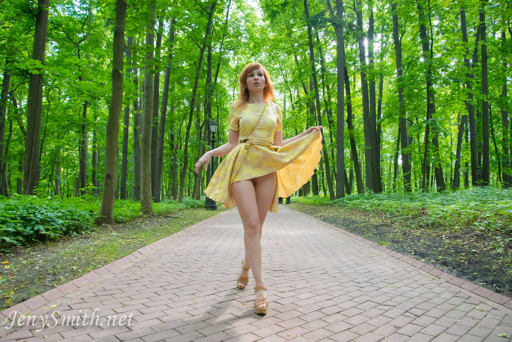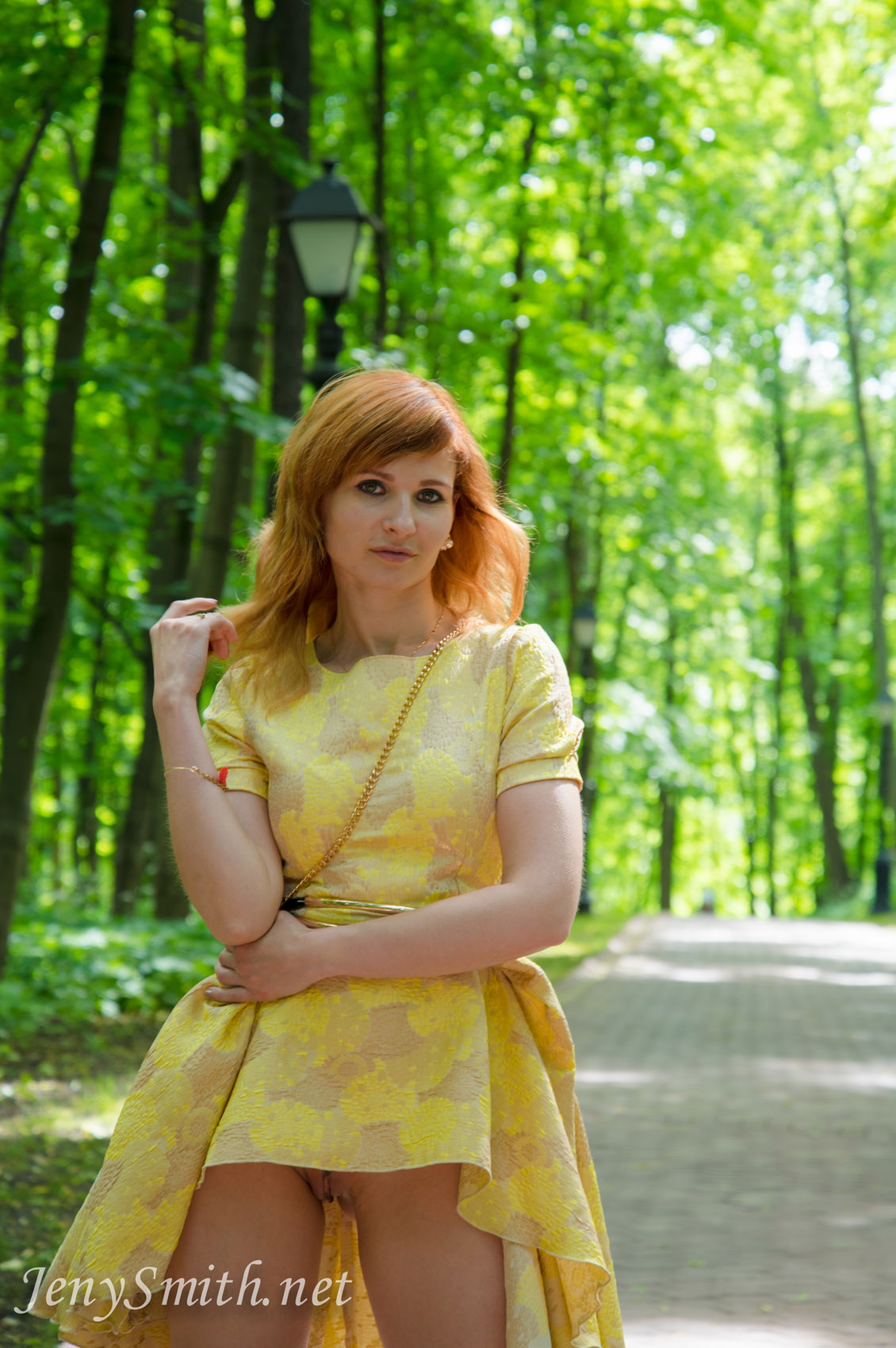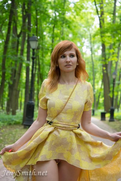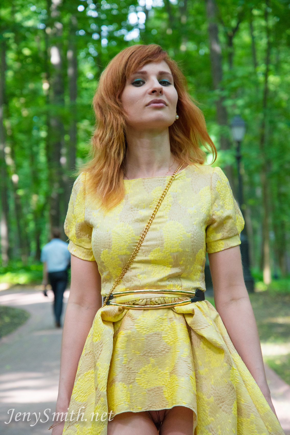 . Did you know she's not wearing any panties under her sexy yellow dress? Yea, that's the secret she doesn't want to get out, except for you!