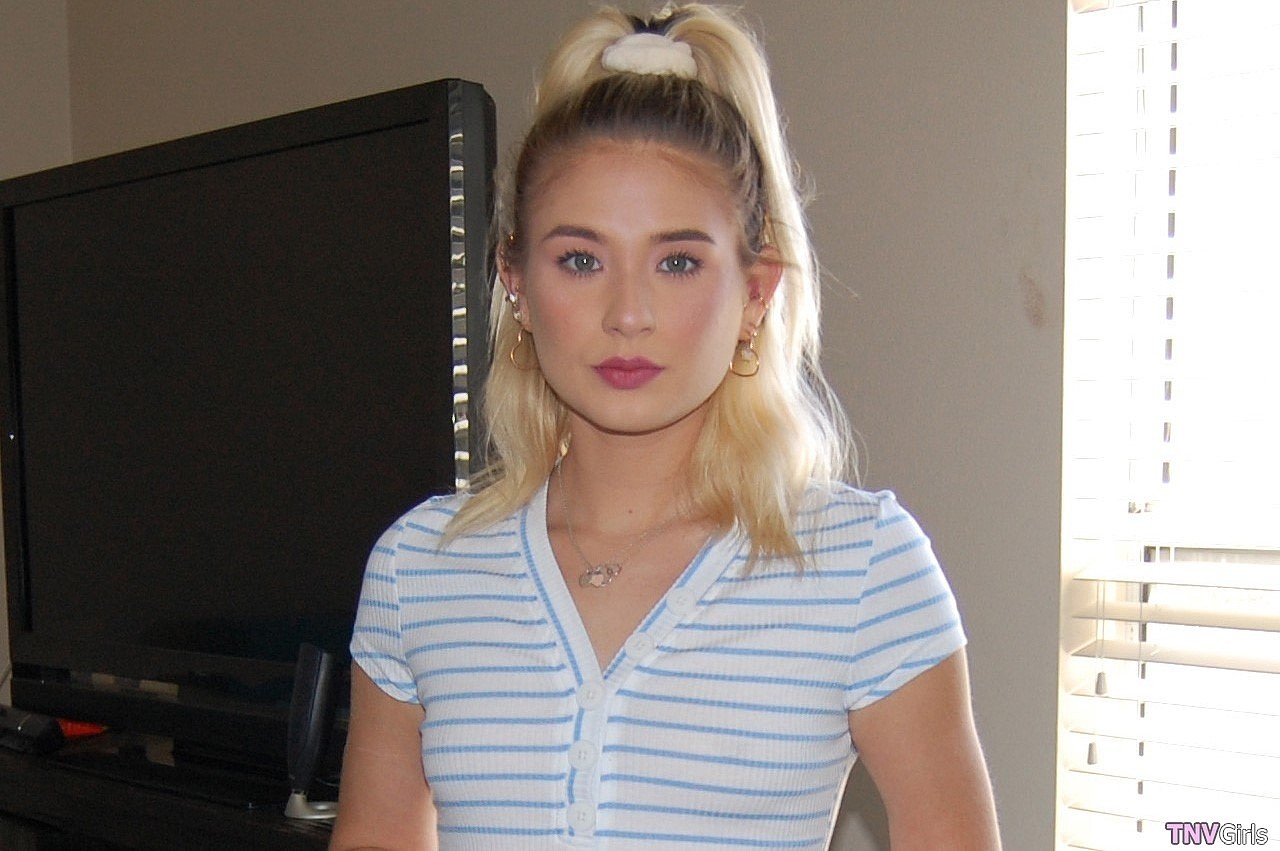 Jessie Saint absolutely looks amazing in her tiny dress and shiny panties before she strips naked on TNV Girls.