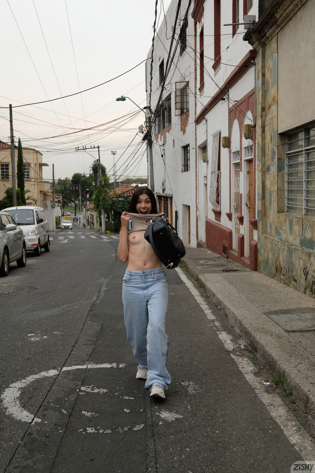 Julia Campos prove that developing countries have some of the most beautiful women as she pulls down her jeans for thong flashing on Zishy.